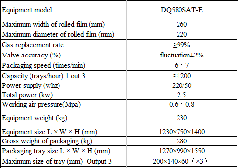 Modified Atmosphere Fully Automatic Chain Modified Atmosphere Plastic Tray Sealer DQ580SAT-E High Quality Tray Sealer MachineMachine Description